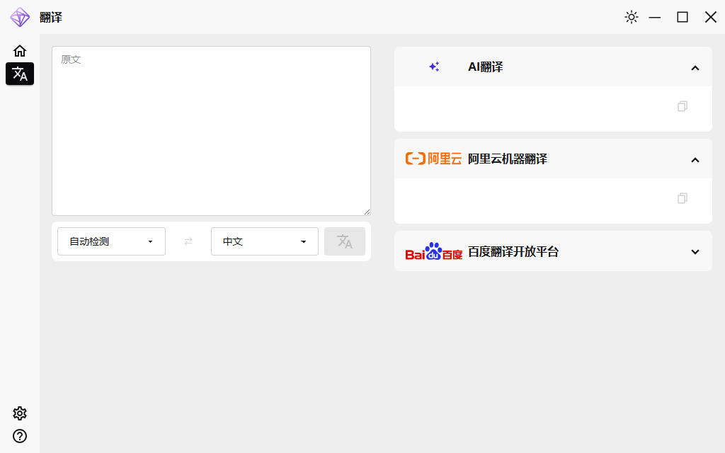 若启用了至少一个互联网翻译提供商,翻译界面将会展示为原文输入框以及翻译提供商信息。