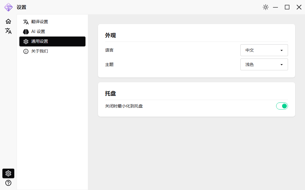 关闭时最小化到系统托盘:开启后,点击软件右上角关闭按钮后,软件不会直接关闭,而是隐藏窗体。可由系统托盘操作再次展示窗体。