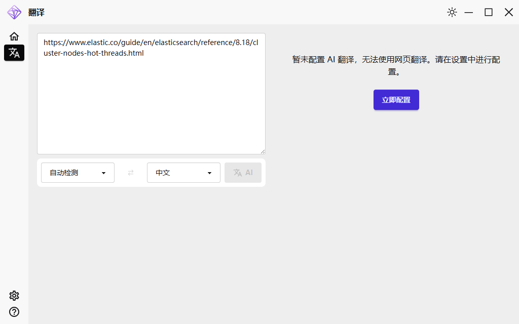 如果未设置 AI 翻译,当原文输入框输入 URL 地址后,界面会提示进行配置,如下图: