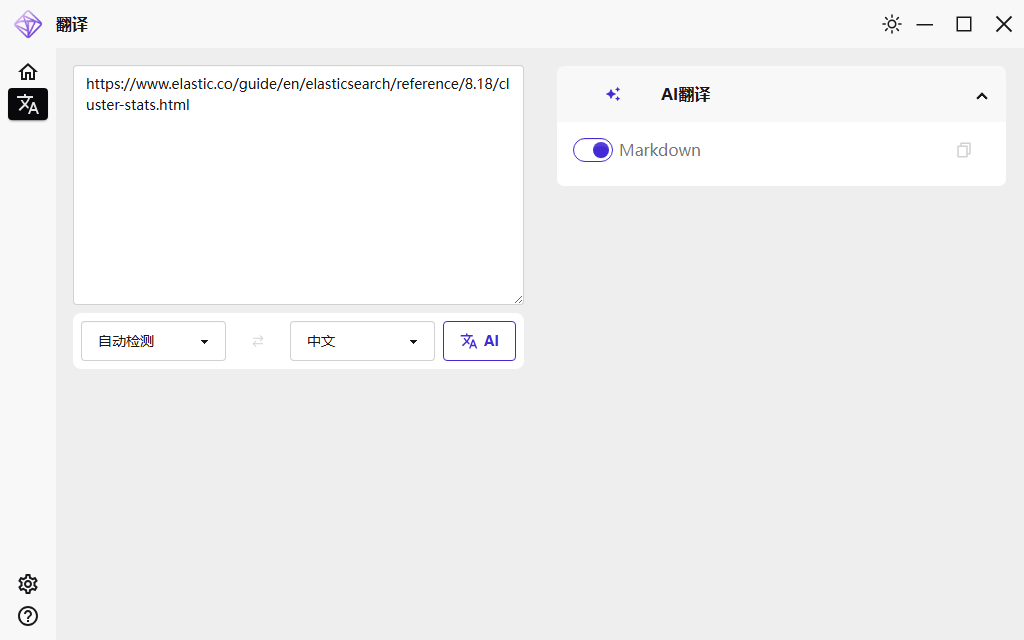 右侧 AI 翻译中的 Markdown 开关默认开启。